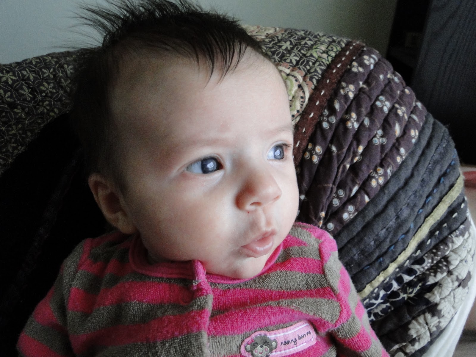 I was surprised the other day when I laid Avey down after her 2am feeding when she didn't cry-- she just laid there smiling and chatting quietly to herself. I went back to bed and so did she. She did it again last night. It's a relief to know that my independent girl doesn't need me to rock her to sleep every time I lay her down.